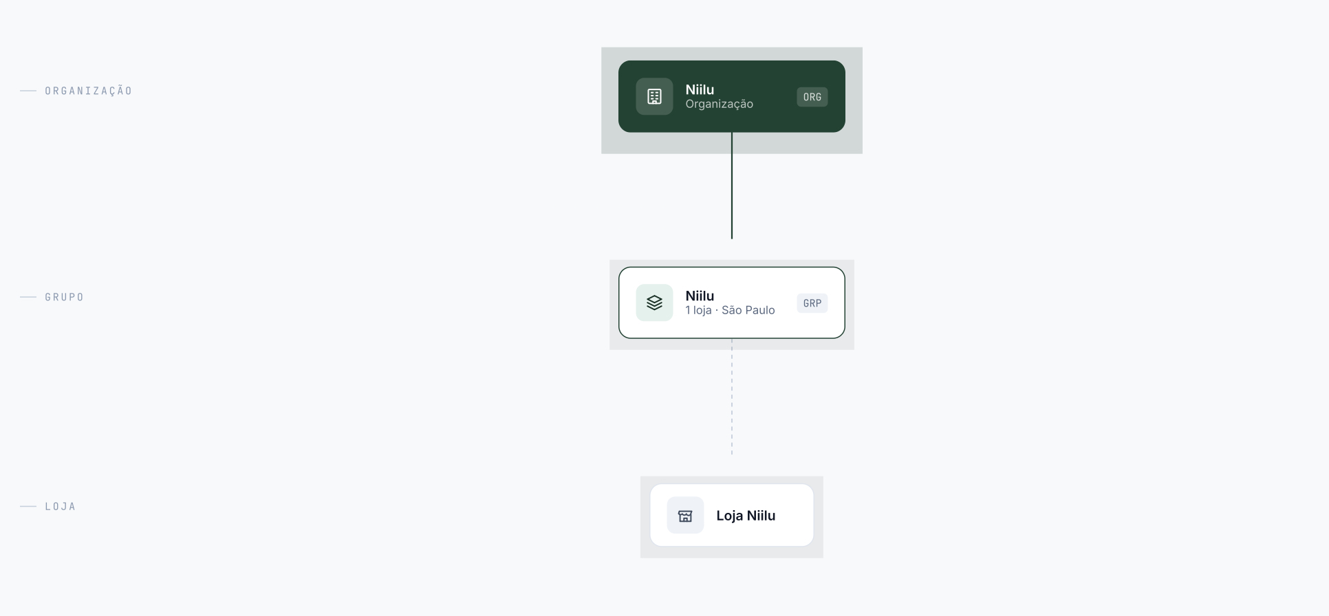 - Planeje sua hierarquia antes de cadastrar as lojas: pense nos agrupamentos que fazem sentido (região, marca, operação).